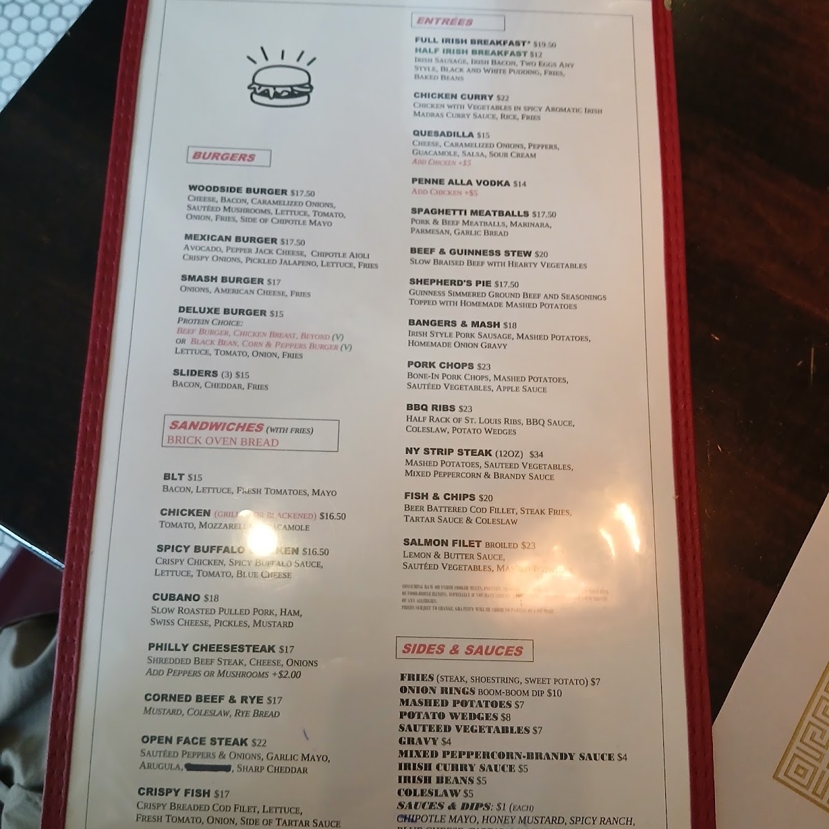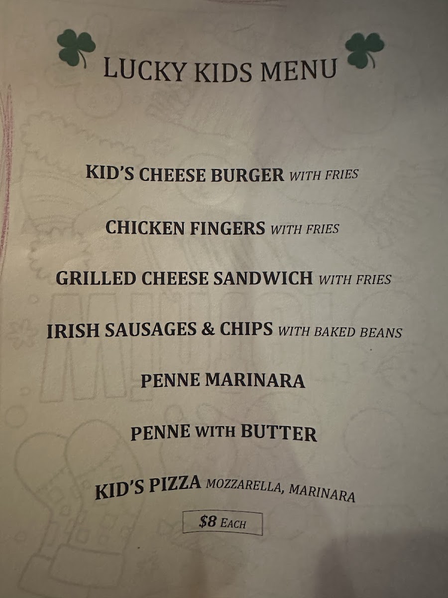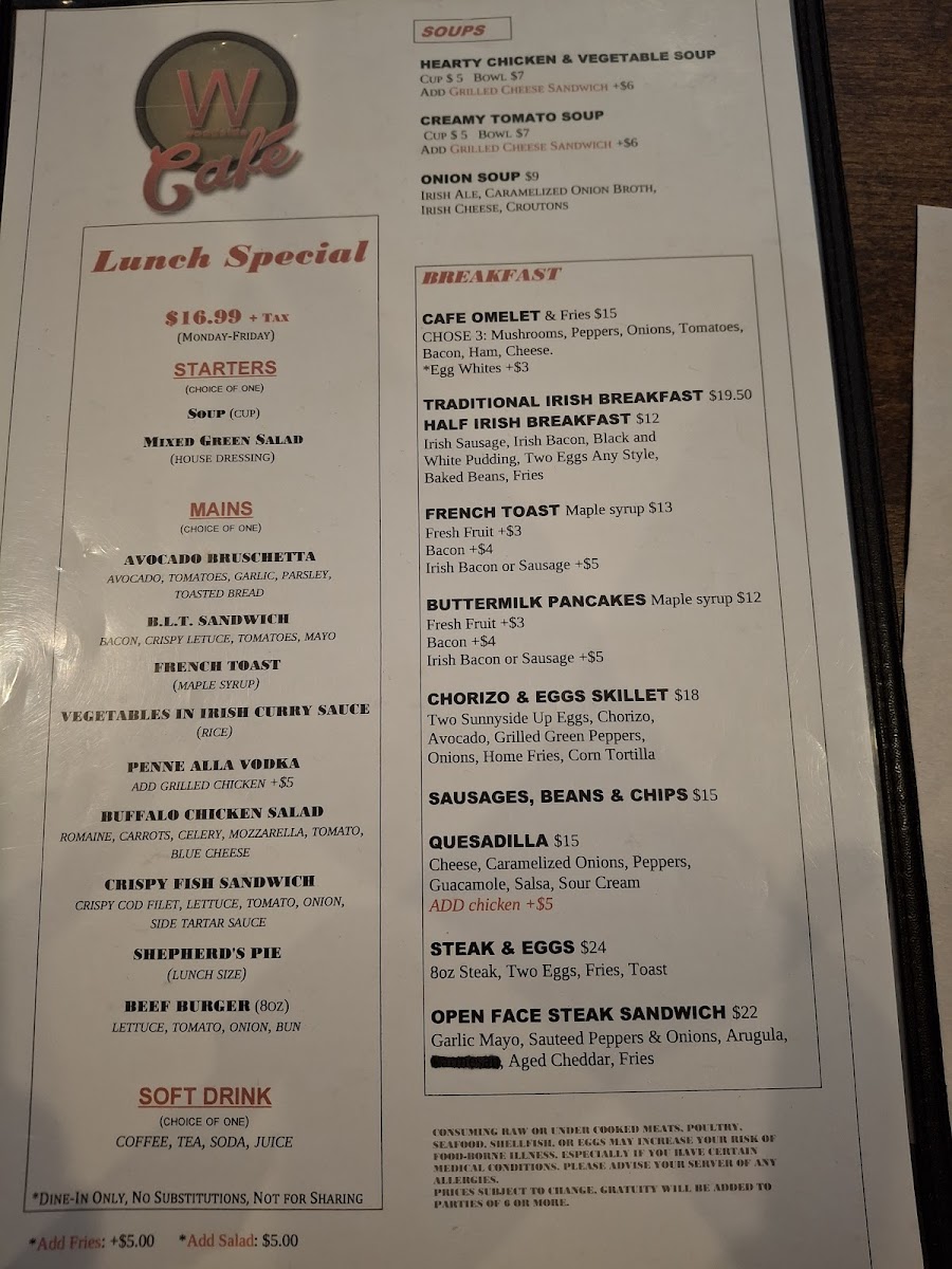 Irish Sausage, Irish Bacon, Black and White Pudding, Two Eggs Any Style, Baked Beans, Fries